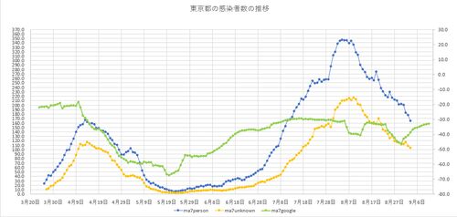 9月第1週の東京都の感染者数の動向 9月第1週の東京都の感染者数が下がっています。Yahooニュースのトップ見出しにも載らなくなりました。 あすから土日なので、PCRの検査数は減少します。金曜日の検査数が多い可能性もありますが、7日移動平均では、効かない…
