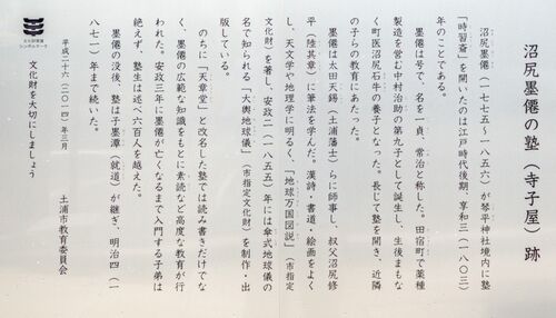 沼尻墨僊の塾の跡(土浦市) 沼尻墨僊の塾というのは、寺子屋のことです。 藩校が、公立であれば、寺子屋は私立になります。 市立博物館の「霞」に青木光行(元土浦市史編さん委員)さんは次のように書いています。 塾「天章堂」と沼尻墨僊について 「天章堂…