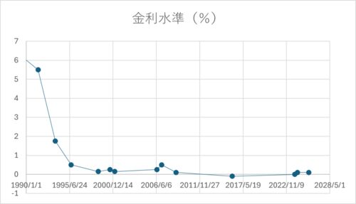 1)解題 図1は、1990年から2025年の政策金利の推移です。日本経済の数字上のピークは1994年にあります。これは、バブルを評価していることになるので問題がありますが、その点は、ひとまず、脇に置いて推論を薦めます。 失われた30年は、1995年に始まって…