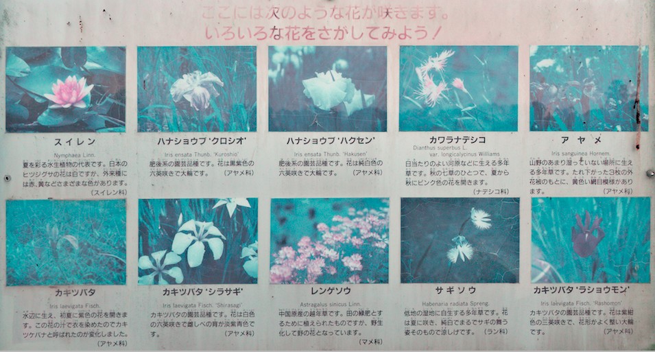 写真2が「アヤメ・カキツバタ・ハマショウブの違い」を説明している案内板です。