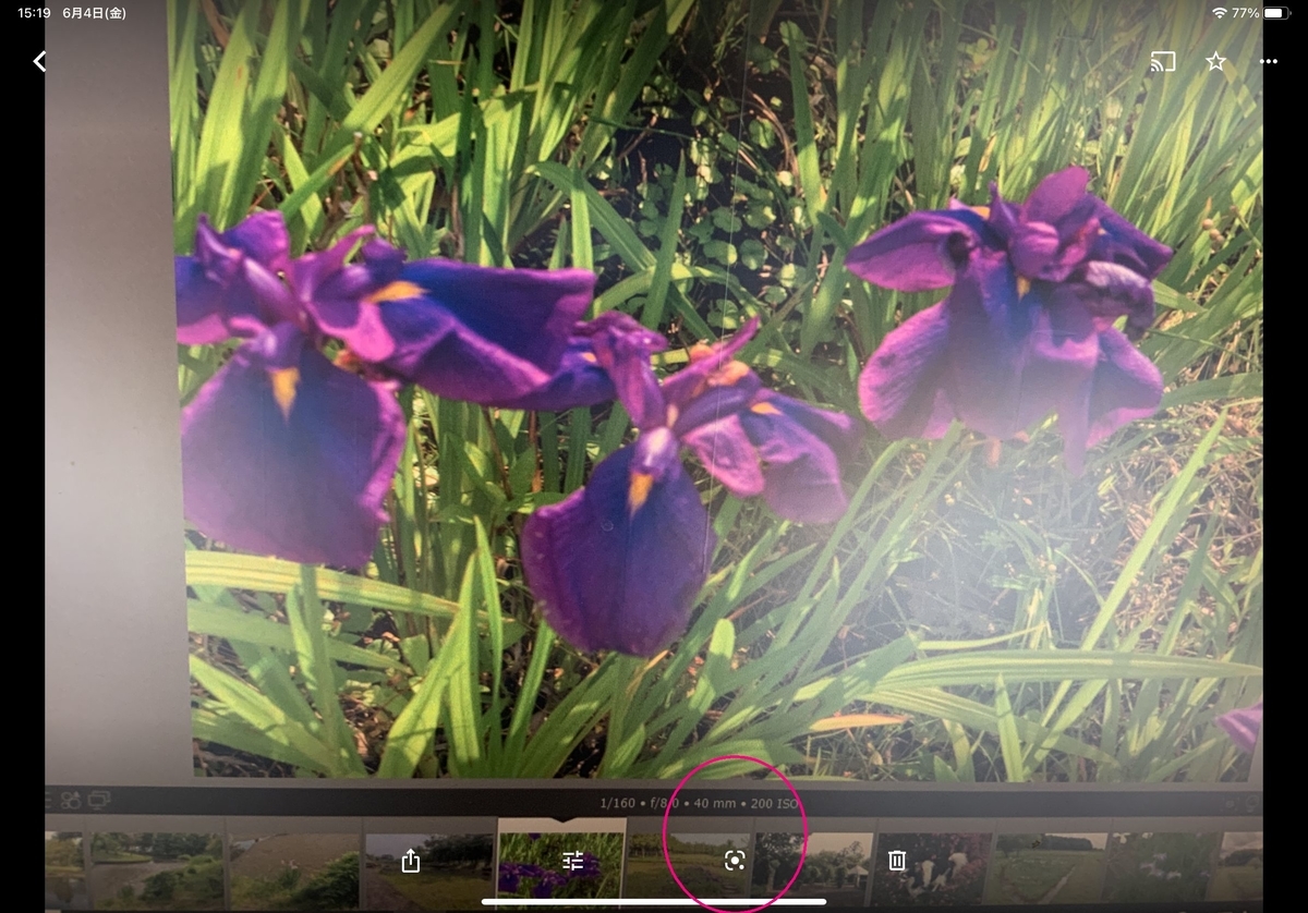 写真1は、GooglePhotoを起動して、すでに、撮影してある花の写真を読み込んだところです。