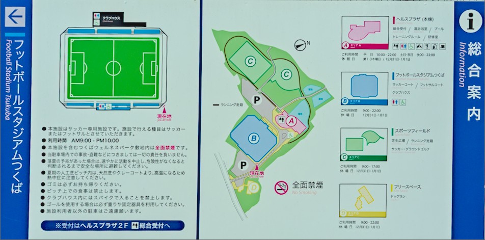 写真1は、つくばウェルネスパークとフットボールスタジアムつくばの案内板です。