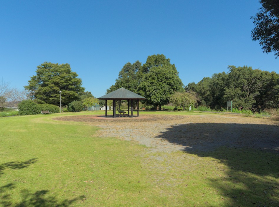 小貝川ふれあい公園の上流ゾーンは、案内図の上では、上流コアゾーン、自然観察の森、オオムラサキの森などと書かれていますが、それは、歩道の河川側の部分です。歩道の河川と反対側にも、駐車場、四阿、オオムラサキの館があります。さらに、歩道の上流部分に、横瀬夜雨詩碑があります。