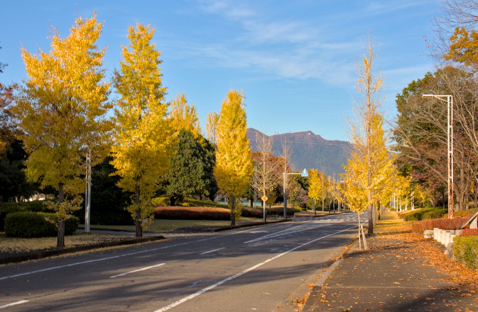 筑波山を入れた銀杏並木の撮影をしたい場合には、お薦めのスポットです。