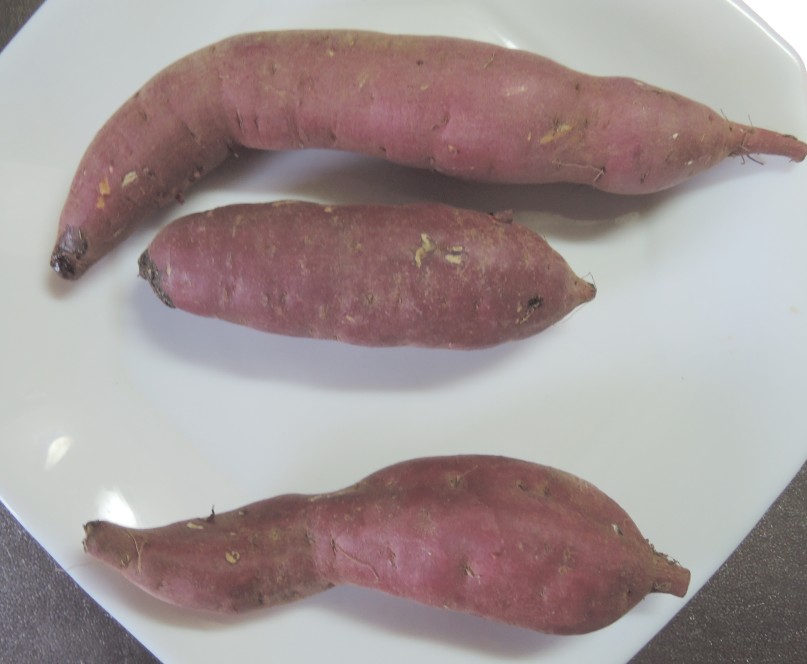 写真1が、紅こがねの生芋です。紅あずまにしては、小振りです。