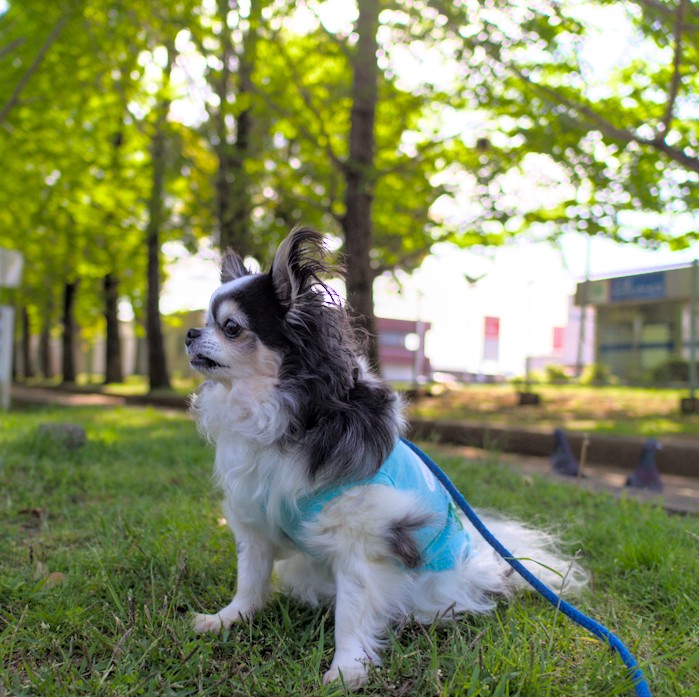 写真1は、逆光ぎみに犬を撮影しています。ここで、使っているカメラはオリンパスのE-PL6ですが、同じ現象は、Kiss M/M2でも起こります。
