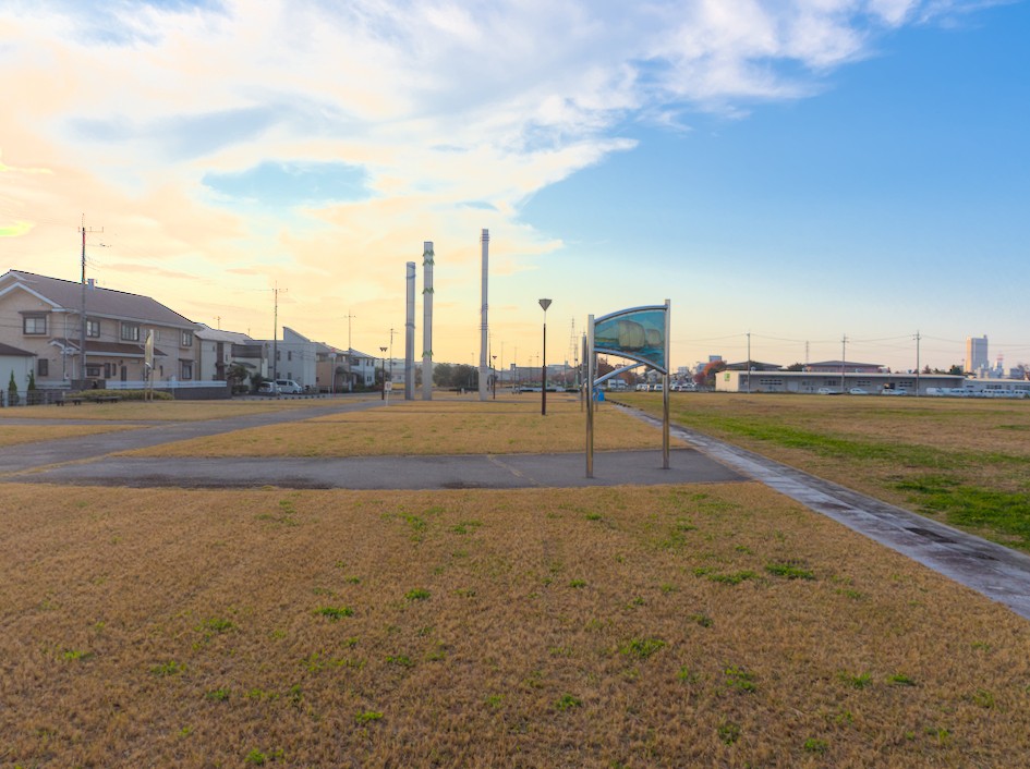 瀧田東公園(風と水の公園)は、霞ヶ浦総合公園(写真1の矢印)から100mの位置にある街区公園です。